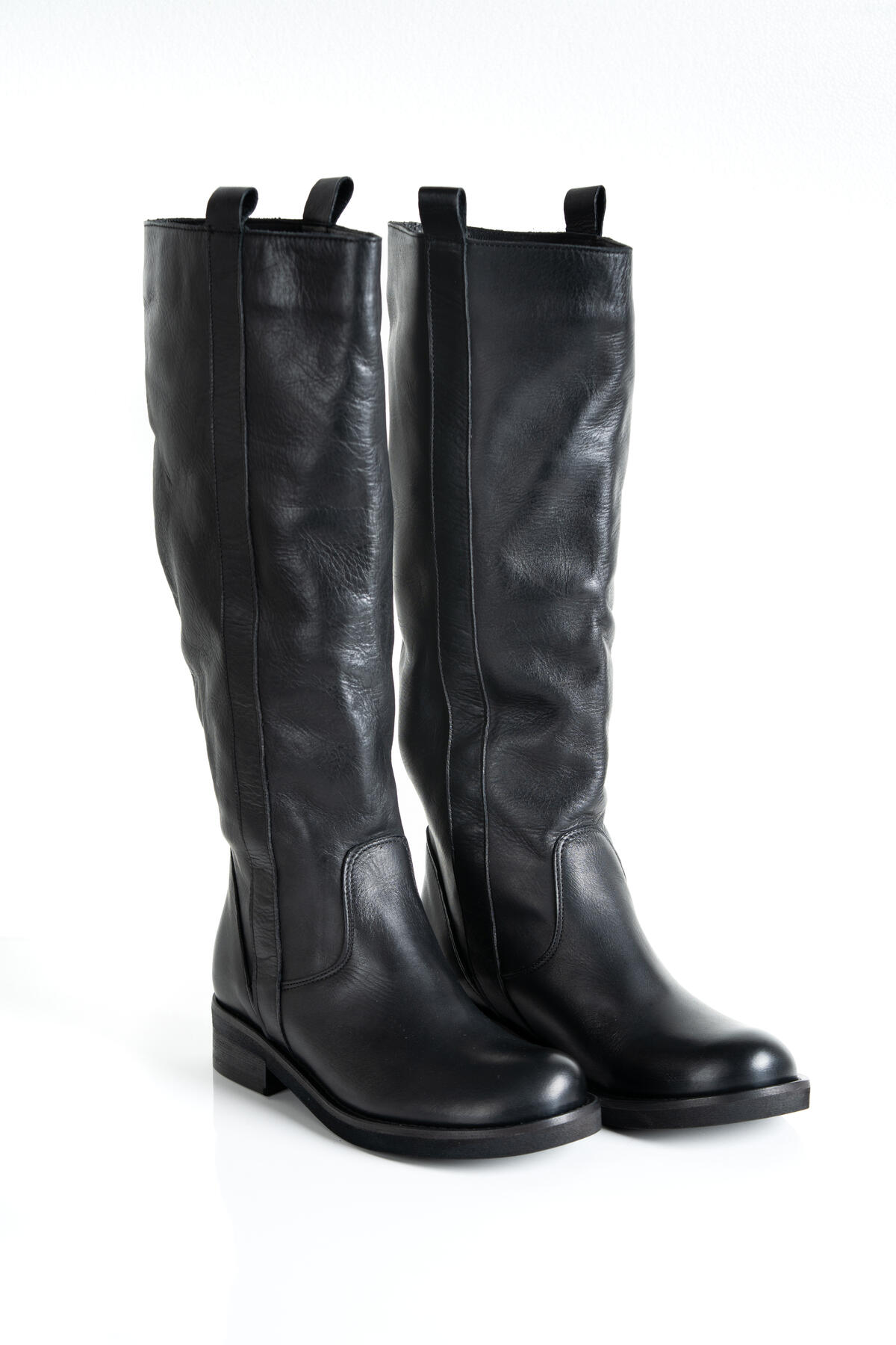 Stivale da donna in pelle nera con chiusura a cerniera laterale.