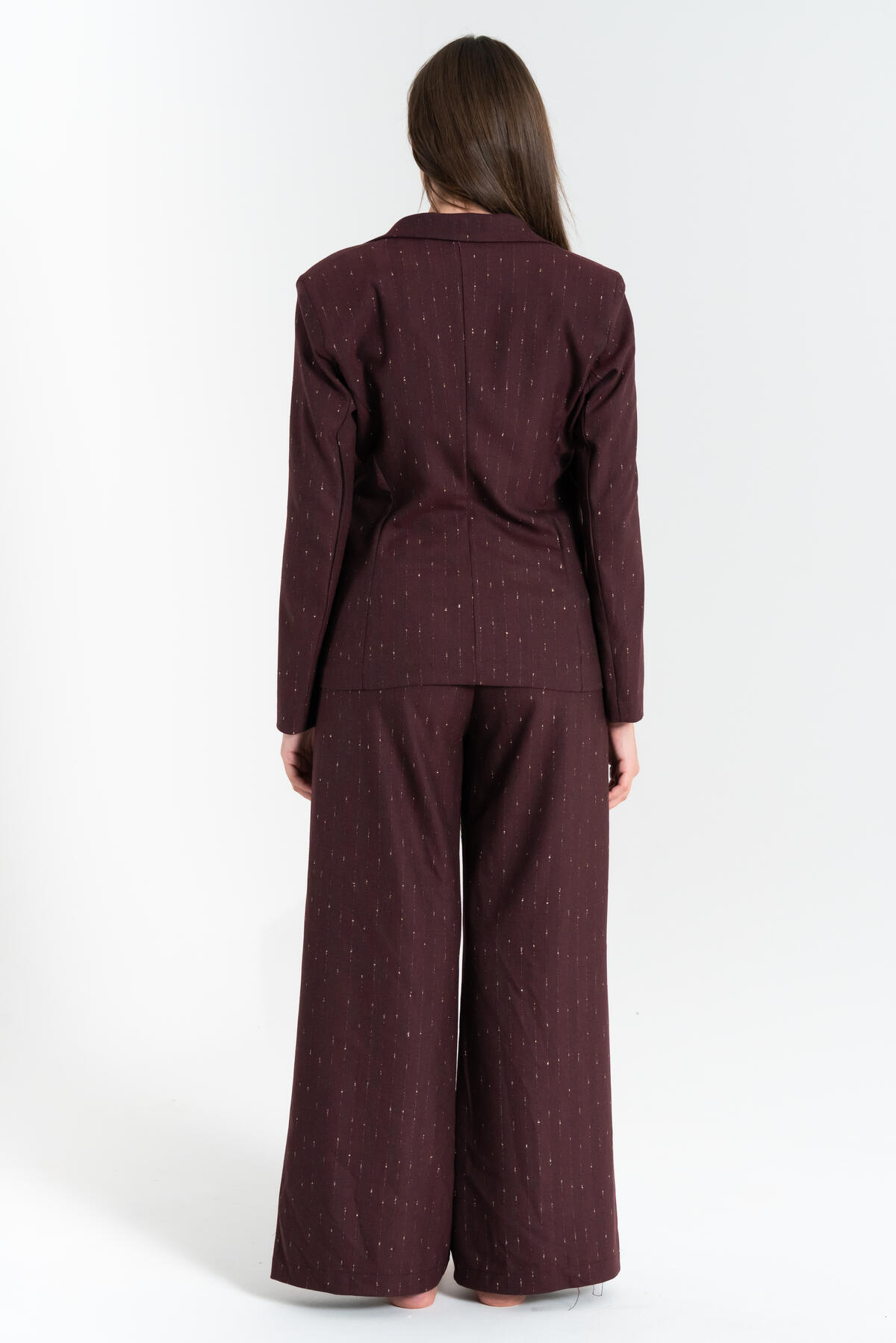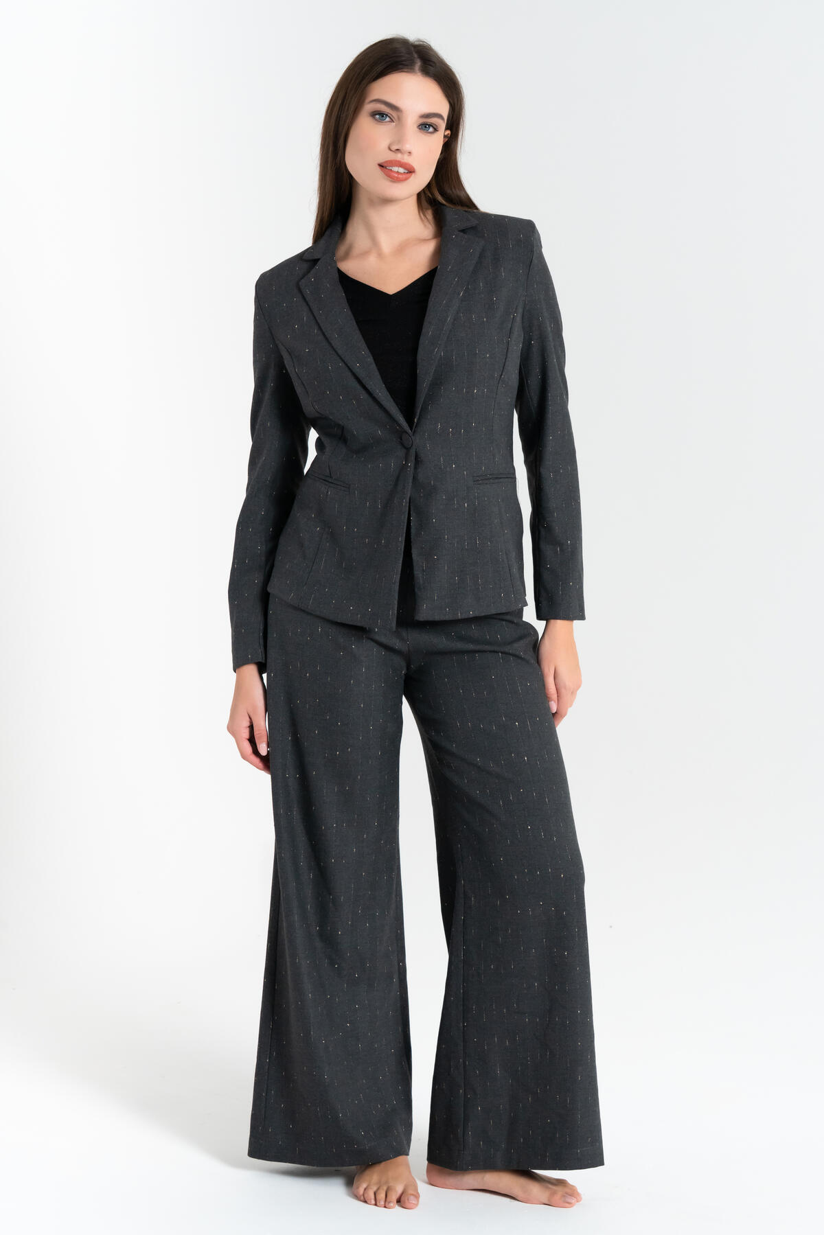 Giacca donna blazer in tinta unita con dei punti luce in lurex, colletto, chiusura bottone davanti.